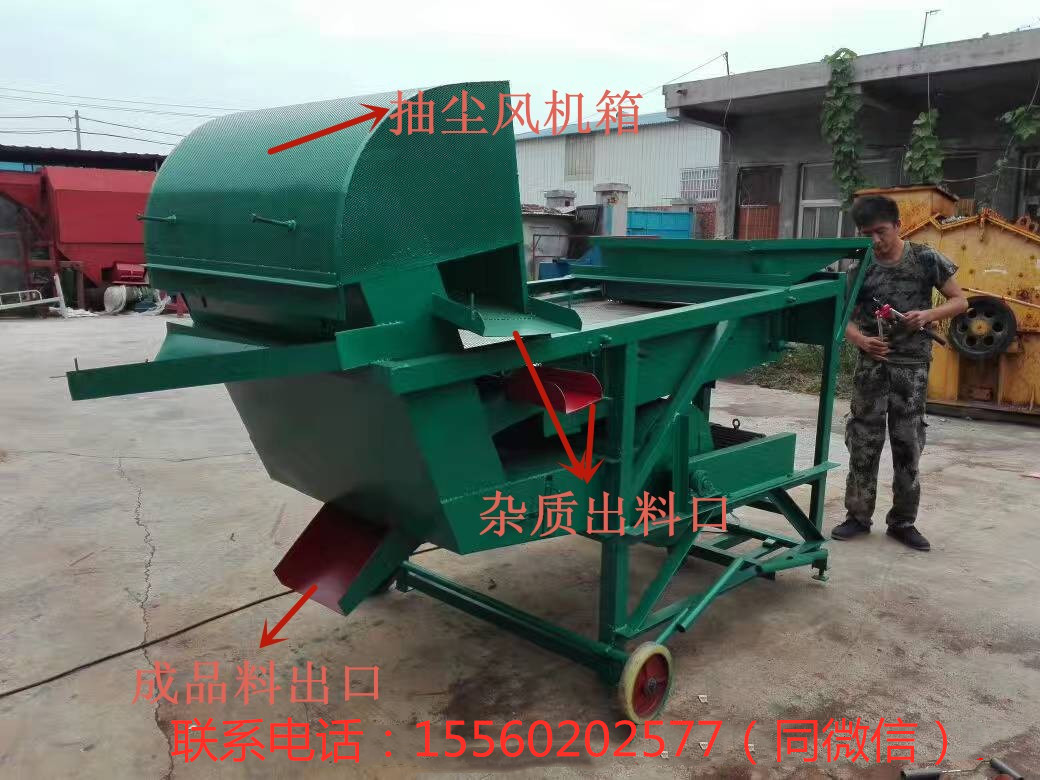 該清理篩為三層篩底,先經過前篩的初次篩分把糧食中的灰塵等清理過去,再有主力風機進行出料前的最后風選清理,清理后再有設在最前端的小型拋糧機進行遠距離拋射,最終達到清理霉變的糧食及糧食中含有的小石子!該機解決了其他糧食振動篩篩過后輸送的麻煩,不僅為您解決了輸送的煩惱,更能給您帶來滿意的篩分效果。該機省去了不必要的輸送機設備的投資,占地小,移動方便,便于維修!